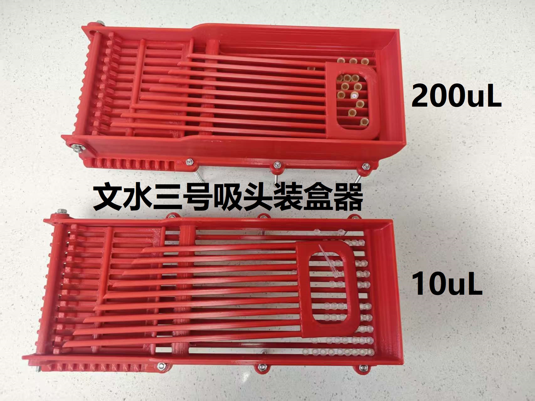 为了解决实验室散装吸头装盒工作量大、枯燥乏味等问题,BROFIX苏州布鲁结合3D打印推出了文水3号吸头装盒器,十余种细节优化改进,加长加深加厚,兼容各种品牌吸头规格,建议配套布鲁多功能盒装盒,无需额外配套导流板装盒效率更高。
