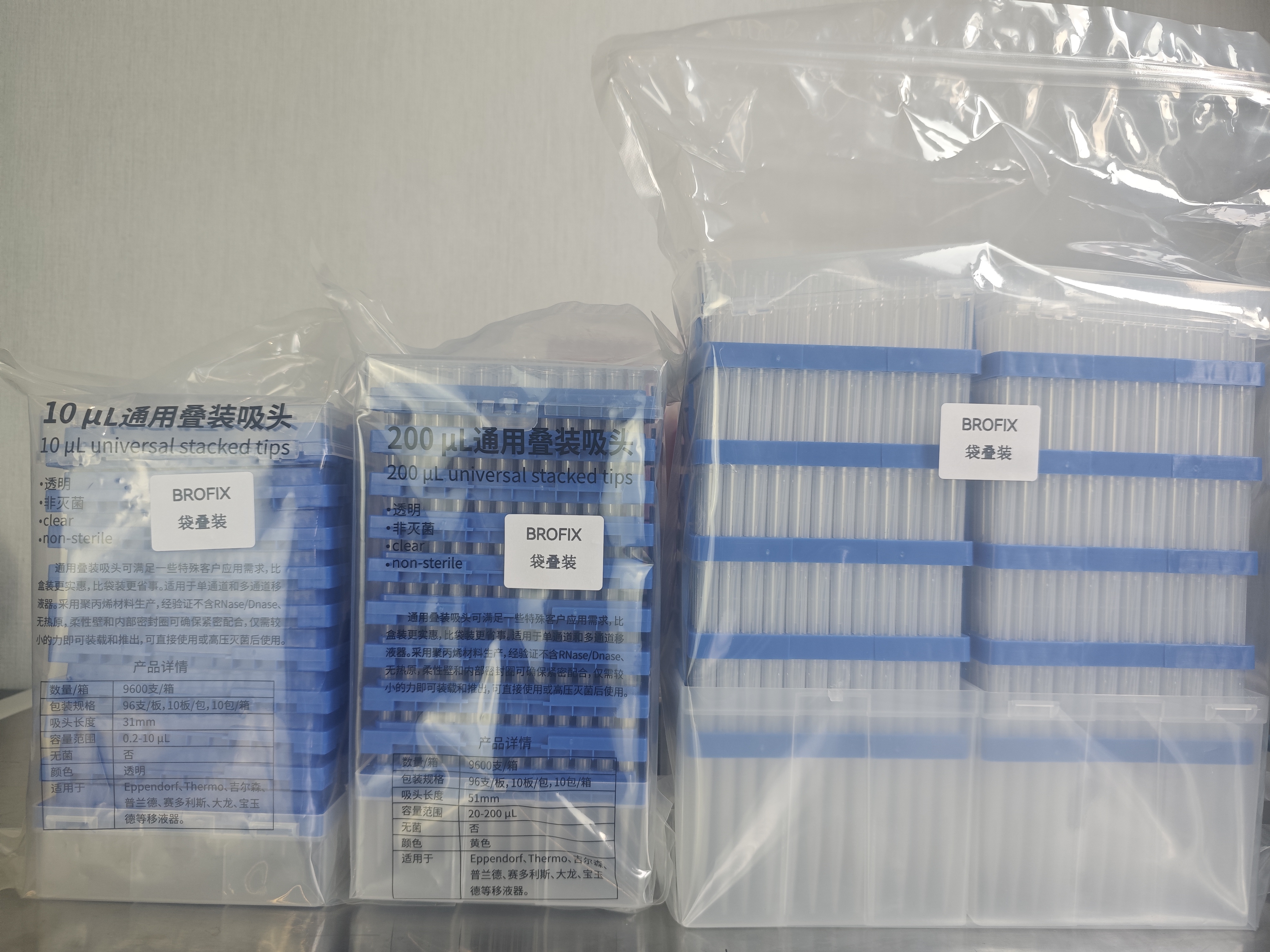 为了解放您的双手,苏州布鲁BROFIX提供袋叠装通用移液吸头,可满足一些特殊客户应用需求,接近散袋装的成本比散袋装更省事。适用于单通道和多通道移夜器。采用聚丙烯材料生产,经验证不含RNase/Dnase.无热原,柔性壁和内部密封圈可确保紧密配合,仅需较小的力即可装载和推出,可直接使用或高压灭菌后使用。